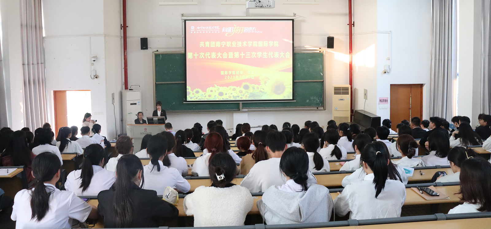 会议回顾了过去四年学院共青团、学生会的工作成果、展望了未来共青团、学生会工作的美好前景,审议通过了陈宇婷同志代表共青团南宁职业技术学院国际学院所作的团委工作报告,选举产生了共青团南宁职业技术学院国际学院第十届委员会;审议通过了李璐璐同学代表国际学院学生会委员会所作的工作报告,选举产生了国际学院第十三届学生会委员会委员。