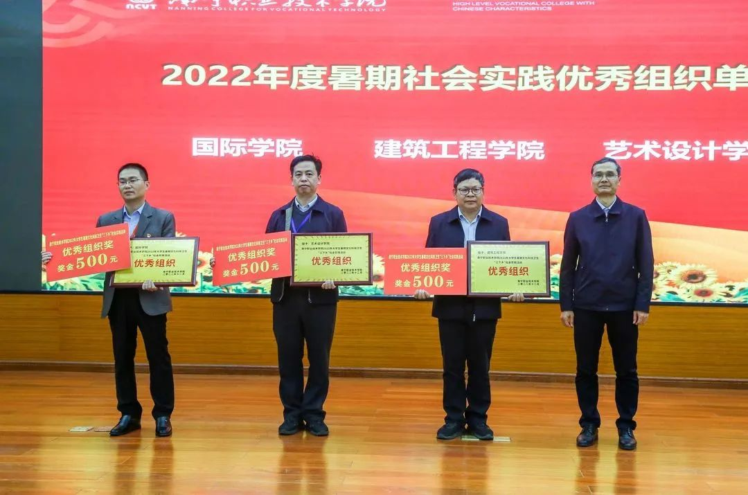 会上,我院获得2022年暑期社会实践活动“优秀组织奖”,并且我院已连续三年获此荣誉。“青空间”教育实践团获“优秀团队”奖,团队指导老师陈敬平获“优秀指导老师”奖。同时,我院青年志愿者协会获被评为2022年度志愿服务“先进集体”,全校仅两个社团获得此荣誉。此外,在暑期社会实践活动中我院12名同学荣获“优秀通讯员”称号,25名同学荣获“优秀志愿者”称号,64名同学获被评为“先进个人”。