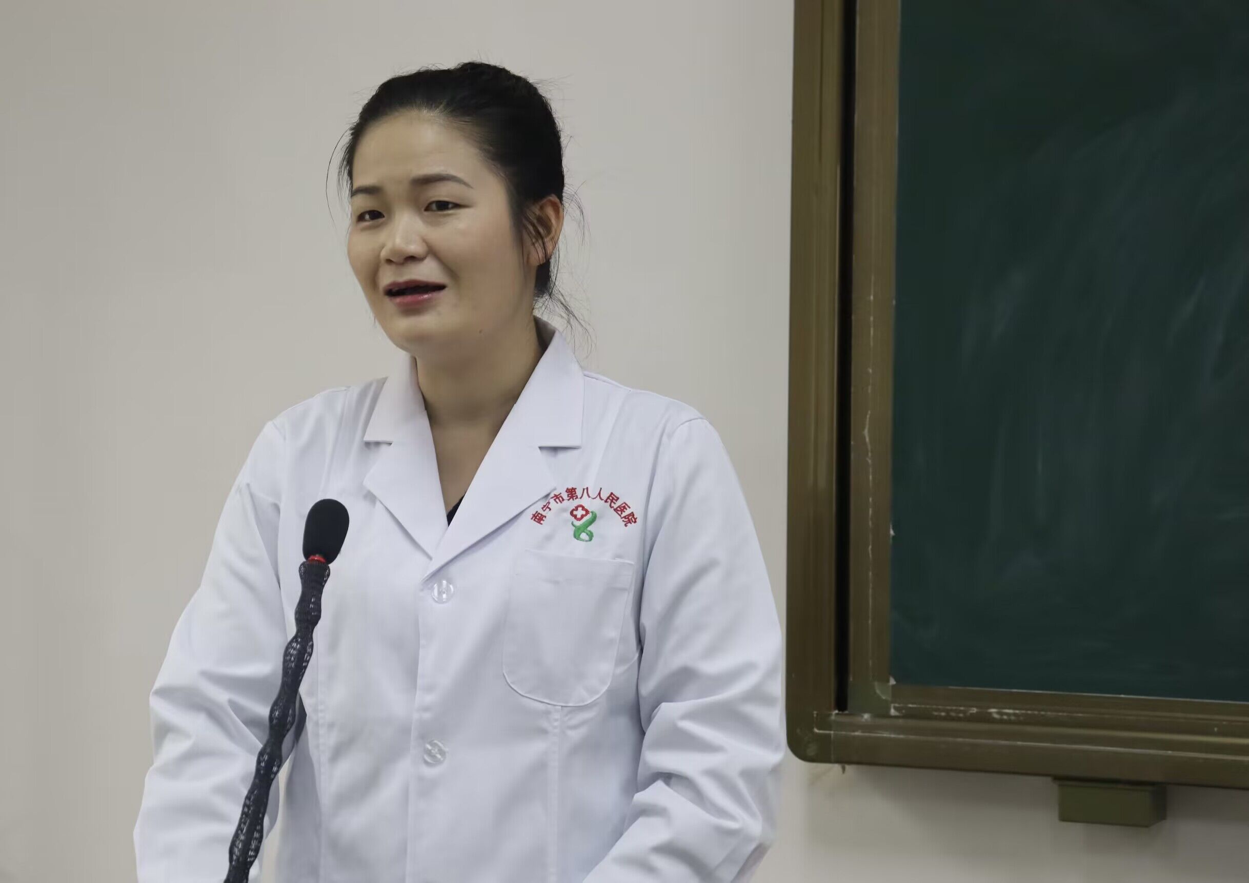 练梦南医生讲课(梁俊丽/摄)