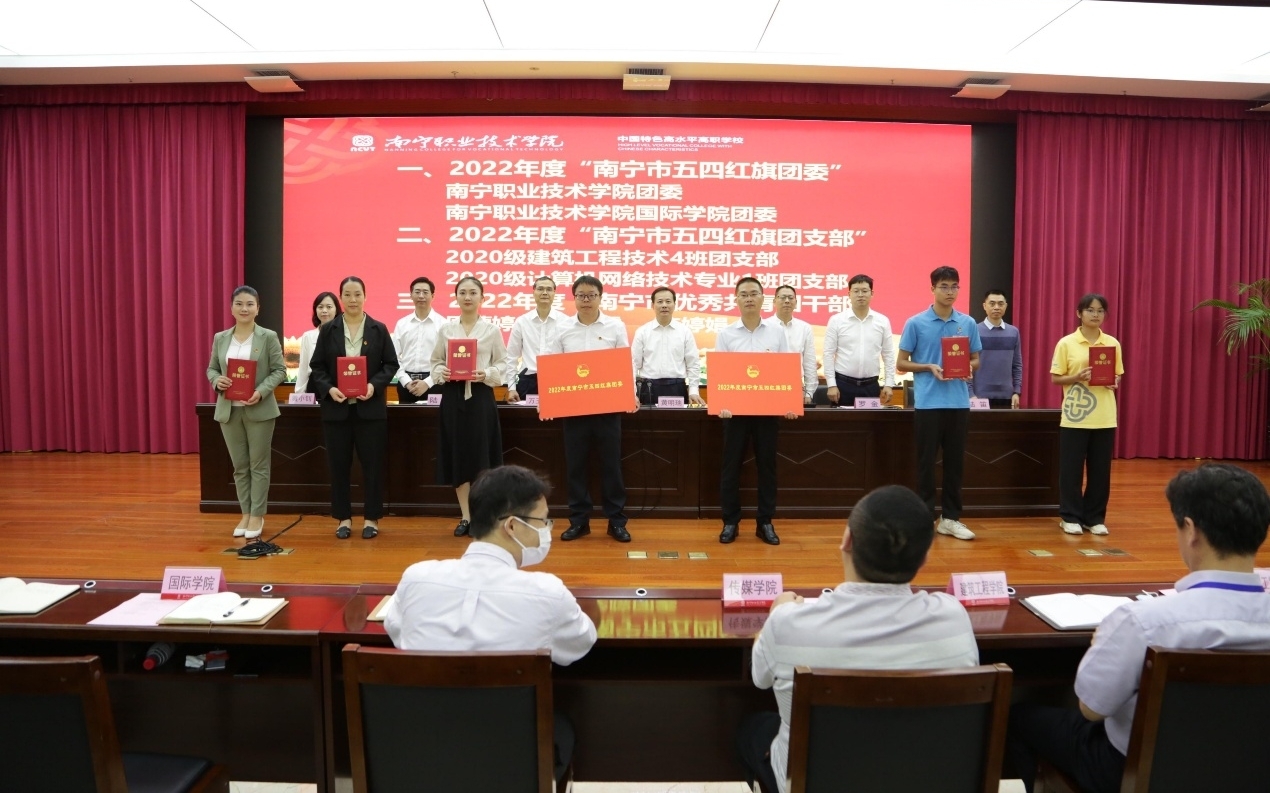 表彰会上,我院团委荣获2022年度“南宁市五四红旗团委”称号,2021级商务英语3班团支部获校级“十佳团支部”称号,2021级应越2班李晓获校级“十佳共青团干部”称号,2021级商英2班李璐璐获校级“十佳共青团团员”称号。此外,2021级学前教育3班团支部、2022级商务英语1班团支部、2022级青年志愿者协会团支部、2021级商务英语3班团支部获校级“先进团支部”称号,2021级港航1班黄翠凤等15人获校级“优秀共青团干”称号,2021级港航2班吴宣秀等47人获校级“优秀共青团员”称号。过去一年,在共青团工作中涌现出了一批先进集体和先进个人,他们奋发图强,团结一致,践行使命和担当,充分展现了学院团员青年们昂扬向上的精神面貌。