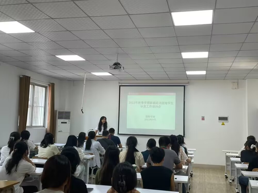9月5日,国际学院在二号教学楼101室召开2023-2024学年家庭经济困难学生认助工作培训会,以全面推进精准资助,确保学生资助工作公平、公正、透明、科学进行。学院党委副书记林漫森、全体辅导员老师和全体班级资助委员参加了本次培训会。