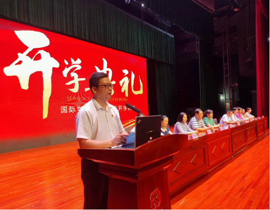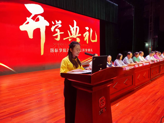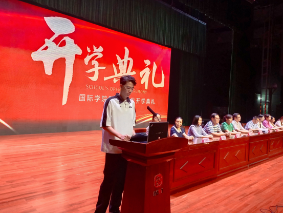 9月12日,国际学院2023级新生开学典礼在学校会议中心礼堂举行。学院党委书记、院长张治中,党委副书记林漫森,副院长伍淑君,学院各中心(室)主任、各专业带头人(负责人)、全体教职工以及全体23级新生参加典礼。新生开学典礼由林漫森副书记主持。