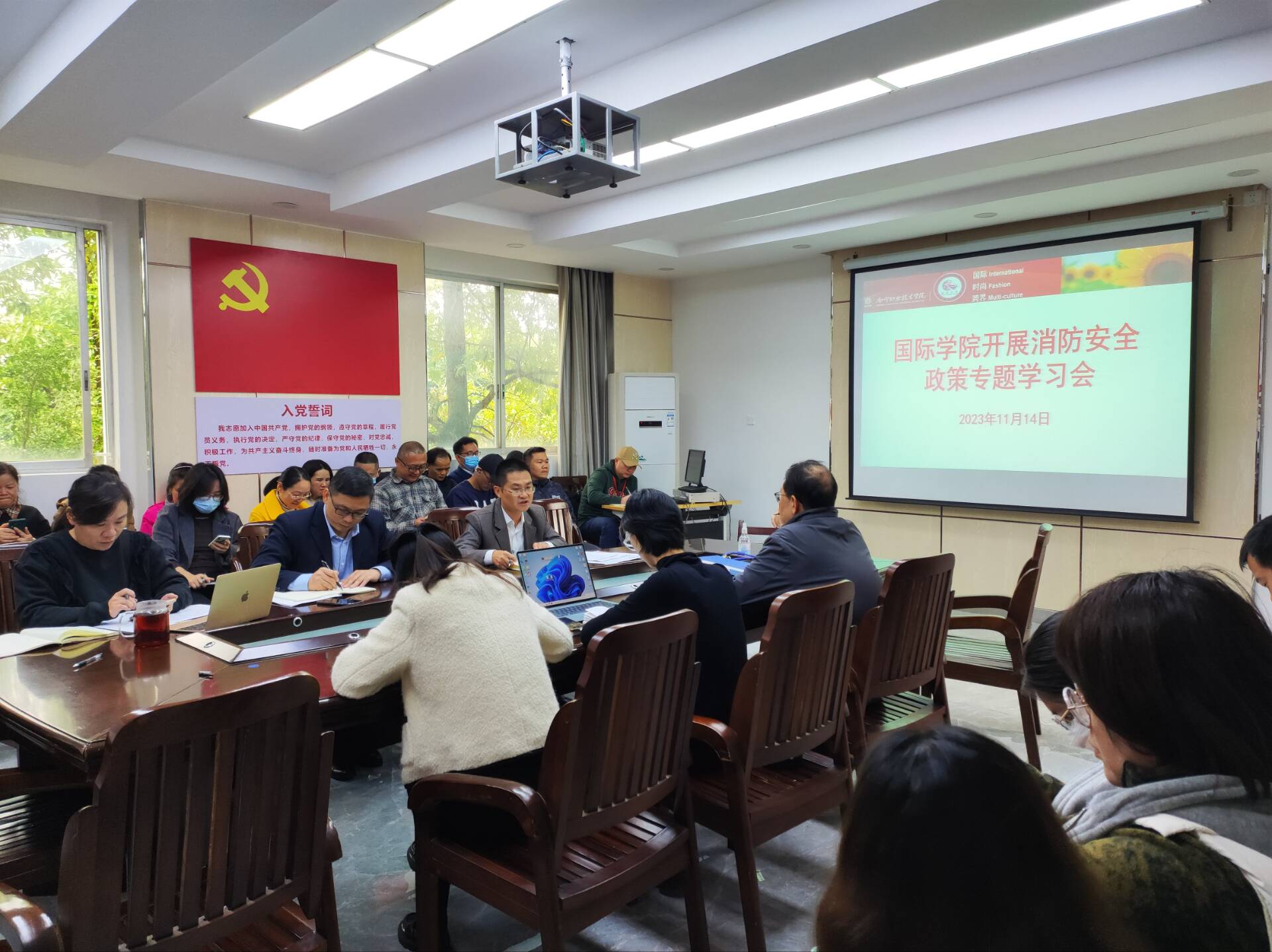 11月14日下午,国际学院党委书记、院长张治中在1教301会议室,主持召开消防安全政策专题学习会,系统学习相关消防安全政策文件,提升全师教师消防安全意识,这是学院落实学校2023年消防宣传月活动的重要内容。学院全体教职工参加了本次专题学习会。