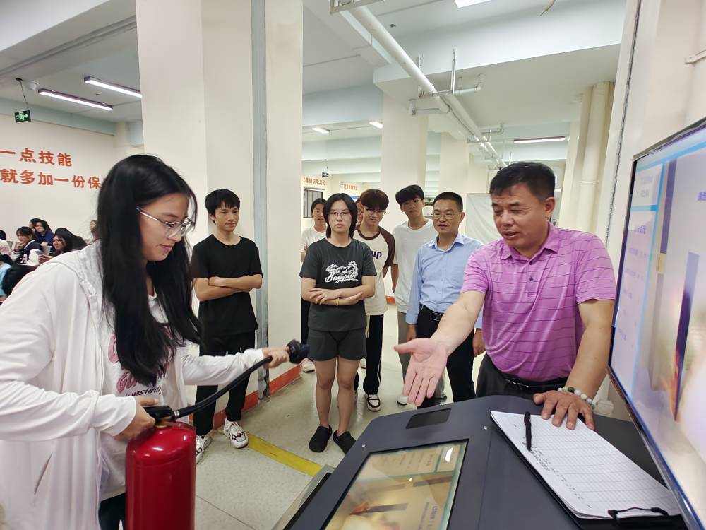 在活动中,基地的工作人员现场讲解了消防安全的相关知识,通过操作灭火器的使用方法,有效提高了师生的消防安全意识和消防技能,增强了自救自防和应急处理能力。最后,林漫森副书记叮嘱同学们务必要提高安全意识,谨记安全无小事,时刻严格遵守宿舍消防“六严禁”制度,杜绝使用明火,离宿关水断电。要通过此次消防安全培训,进一步掌握消防安全知识、消防器材使用方法及正确消防逃生技能。同时注意保持宿舍整洁、干净,共同营造安全、文明、温馨、舒适的宿舍之家。