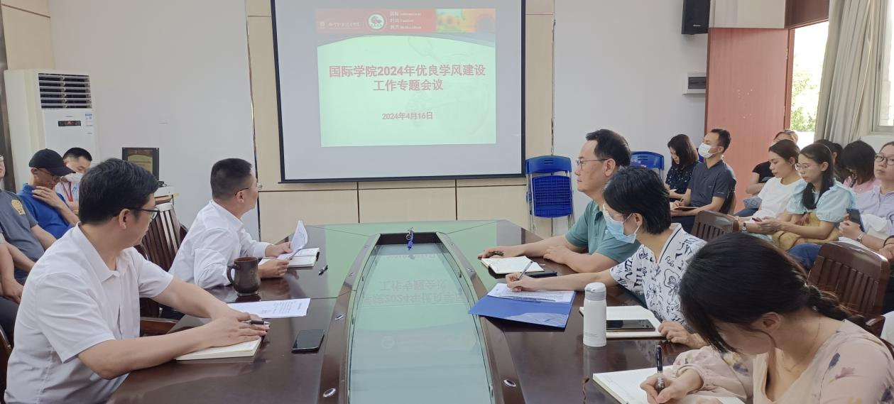 4月16日,国际学院党委书记、院长张治中在1教301会议室组织召开优良学风建设工作专题会议,以落实立德树人根本任务,创新推进“三全育人”体系,营造积极向上、奋发有为的校园育人与学习氛围。学院全体教职工参加了本次会议。