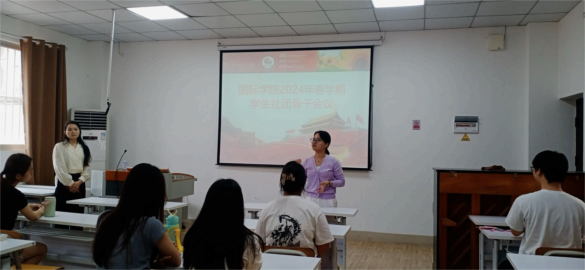 4月1日,国际学院在1教103教室召开2024年春学期学生社团会。我院全体学生社团干部及指导老师李慧和闭露萍参加了本次会议。
