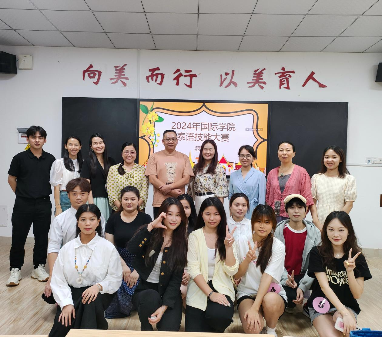 2024年6月5日,国际学院应用泰语专业与外语社在2教102共同举办2024年国际学院泰语技能比赛,本次活动旨在提高我院应用泰语学生泰语综合技能和非泰语专业学生泰语学习兴趣,促进非通用语种专业发展。应用泰语专业团队教师和泰籍外教、外语社学生干部及学院应用泰语和应用越南语专业学生参加本次比赛。