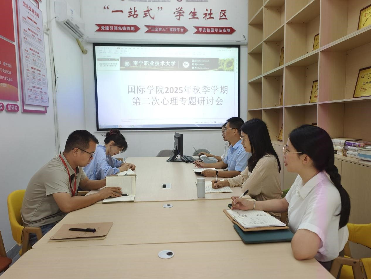 2025年10月11日,国际学院在“一站式”学生社区召开2025年秋季学期第二次心理专题研讨交流会,学院全体专职辅导员出席。会议聚焦心理健康教育工作,着力提升心理危机识别与干预能力,促进学生身心健康与全面成长。