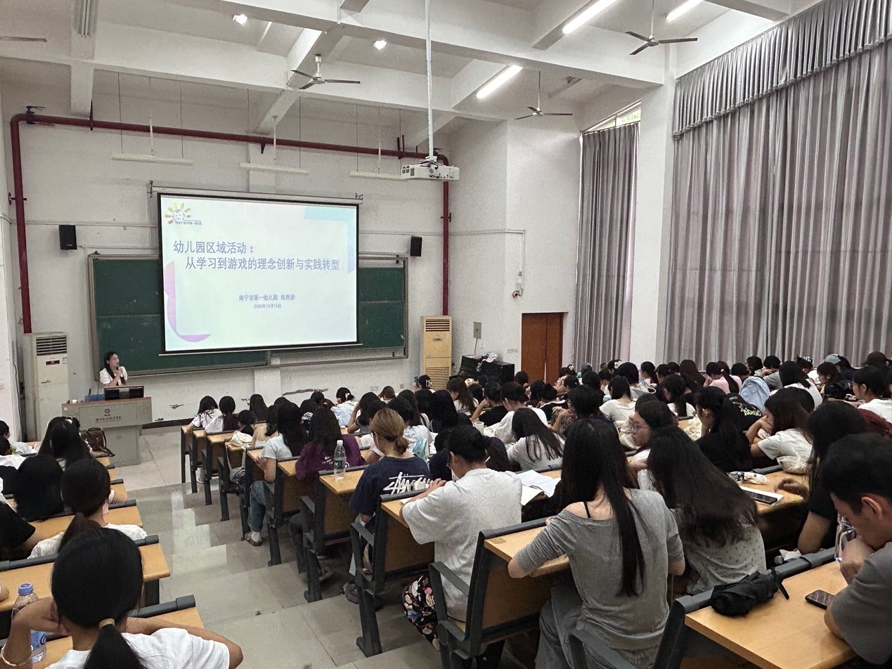 随后,陈熙妍老师以《幼儿园区域活动:从学习到游戏的理念创新与实践转型》为题开展教学。她提出通过创新性设计激发幼儿的探究欲,让游戏成为幼儿学习基本形式的核心观点。
