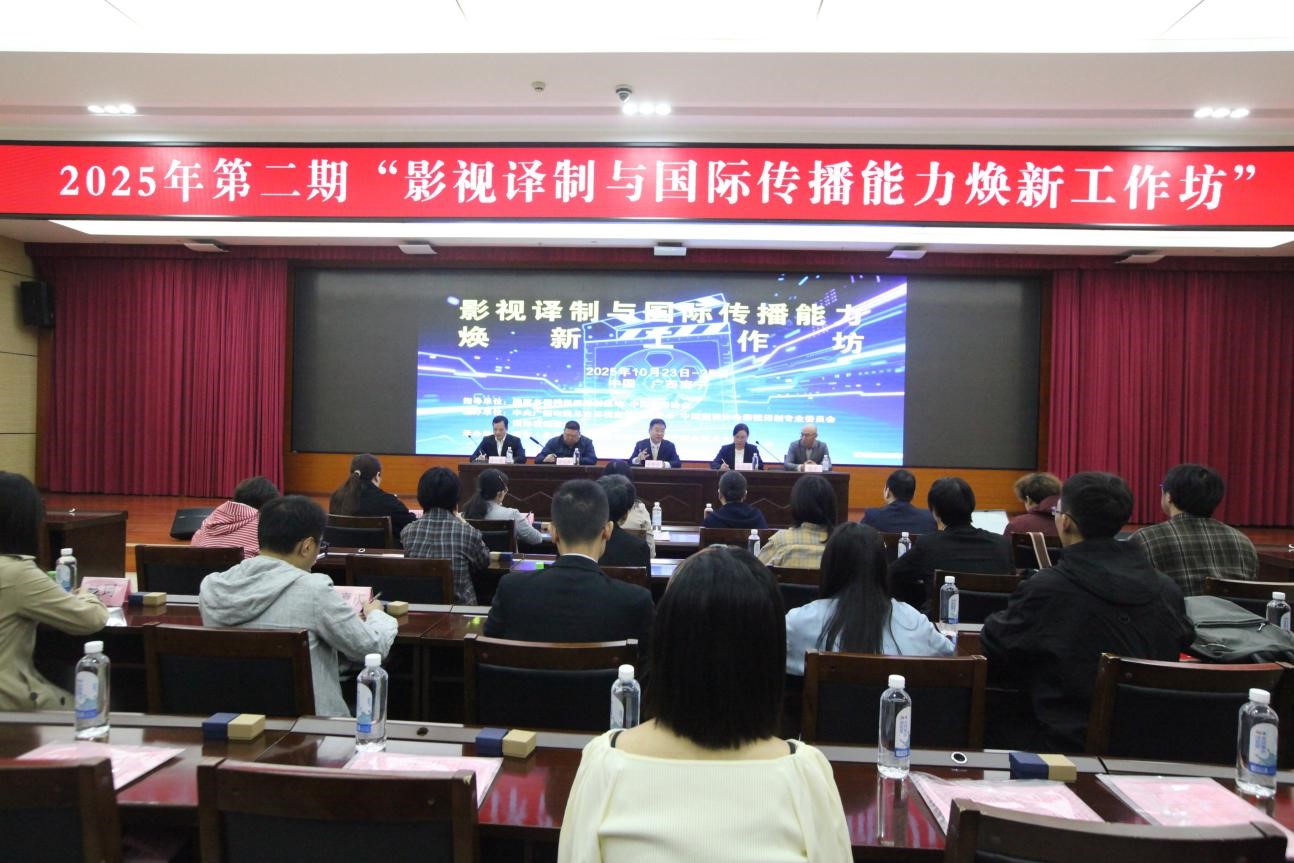 学校黄春波副校长和周旺校长受邀分别出席了本次焕新工作坊的开幕式和闭幕式并致辞。来自中国翻译协会影视译制专业委员会、中央广播电视总台、中国电影资料馆及广西外事办公室的行业权威专家,在为期三天的工作坊研讨中,围绕影视译制与国际传播核心议题展开了深度分享。