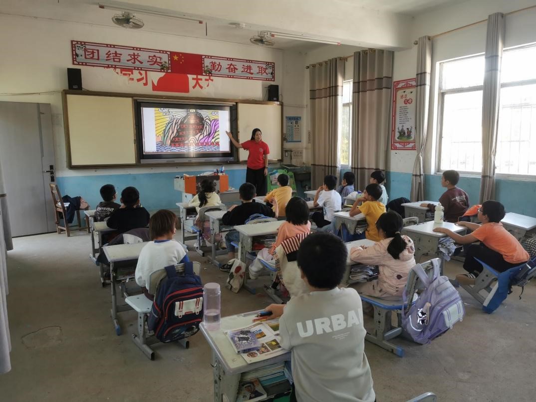 随后学前教育专业师生在绿浪村小学开展“红色润童心,筑梦共成长”主题党日活动,红色美育进课堂、赠送手工绘本、教授剪纸技艺等,为绿浪村学生捐赠“爱与知识的旅途”漂流图书。
