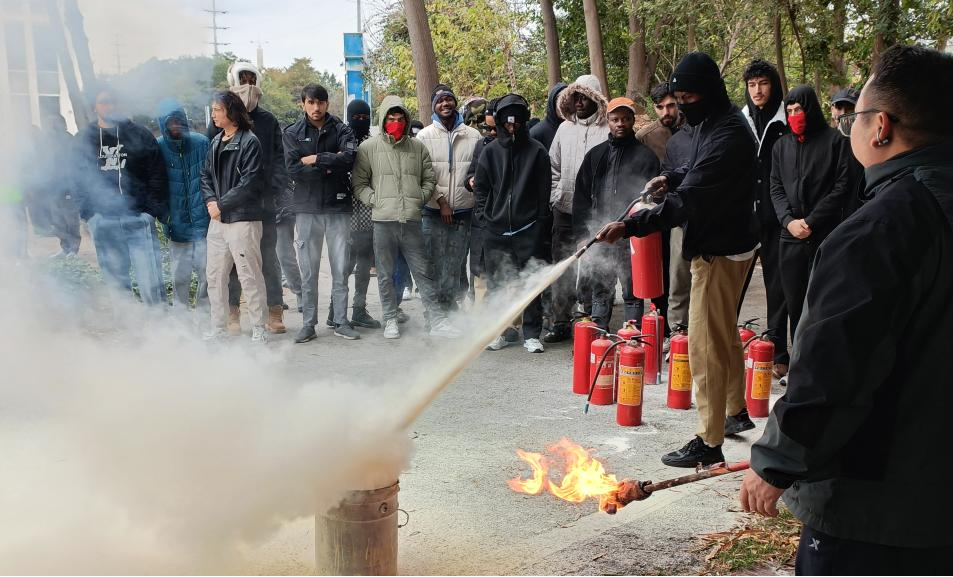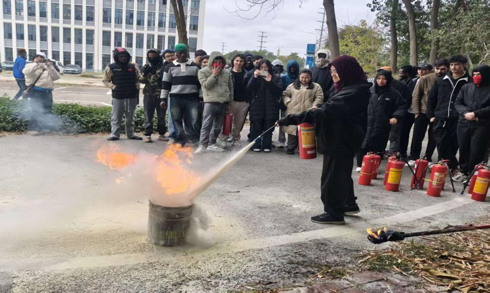 留学生进行消防实操演练