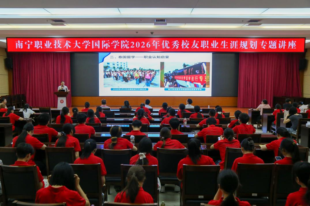 2026年4月13日,2026年“泰友趣”中泰文化交流系列活动——优秀校友故事分享会如期举行。本次分享会特邀2004级优秀校友黄河返校,为2025级应用泰语职业本科学生带来“从南职到泰国:我的职业生涯规划和实践之路”专题讲座,以亲身实践为同学们解读职业规划的价值与成长路径。